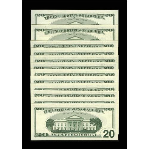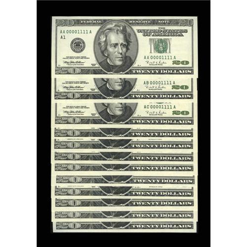 <B>Premium Federal Reserve $20 Set Fr. 2083-A-E and Fr. 2084-F-L 1996 Federal Reserve Notes. Gem Crisp Uncirculated.</B></I><BR>This hard to locate BEP set had a total production run of only 2,000. All 12 notes in this set have serial number 000001111A.<BR><I>From The Collection of Richard A. Beck</B></I>