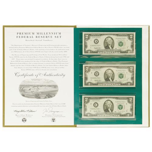 Premium Millennium Federal Reserve $2 Set Fr. 1936-A*-L Premium Millennium Federal Reserve $2 Set Fr