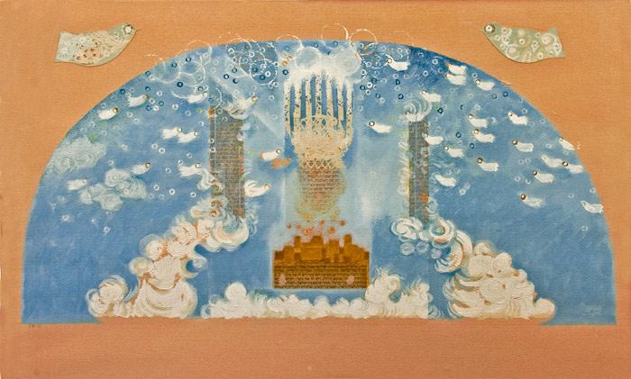 Preparation Work for "Heavenly Jerusalem", signed (lower right), dated 1971 (lower left) and titled "Yochanan Ben Zakai Synagogue, Old City, Jerusalem" (lower right).