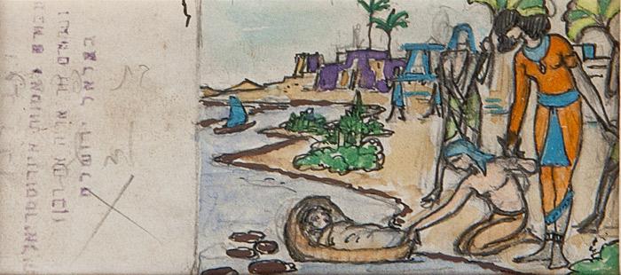 Preparation for "Pharaoh's Daughter and Moses" from the Passover Haggadah, stamped by the estate (middle left)