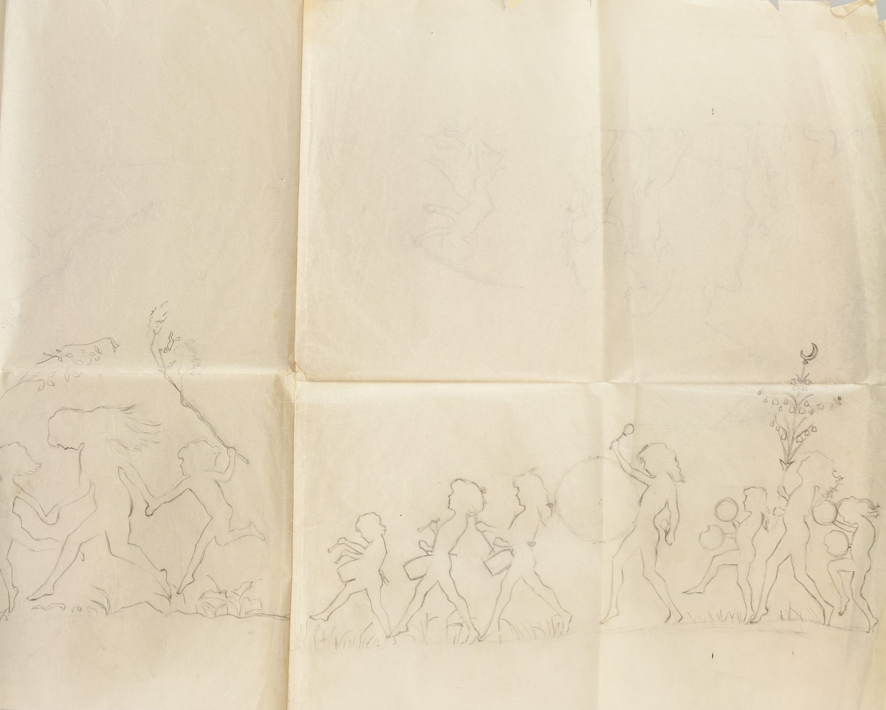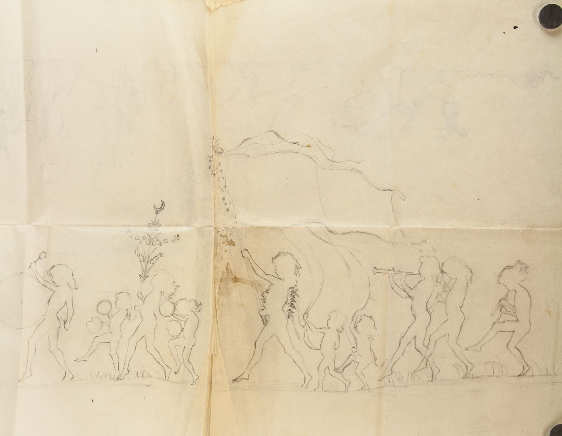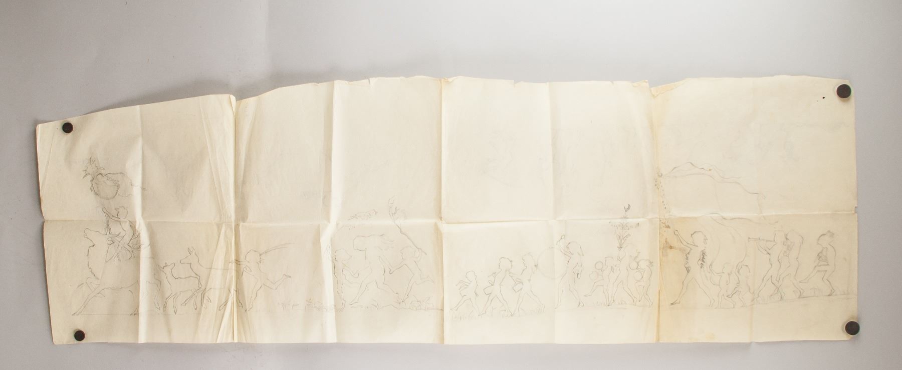 Preparatory work stile Jugendstil, graphite on paper. 18 x 56 in (45.7 x 142.2 cm)