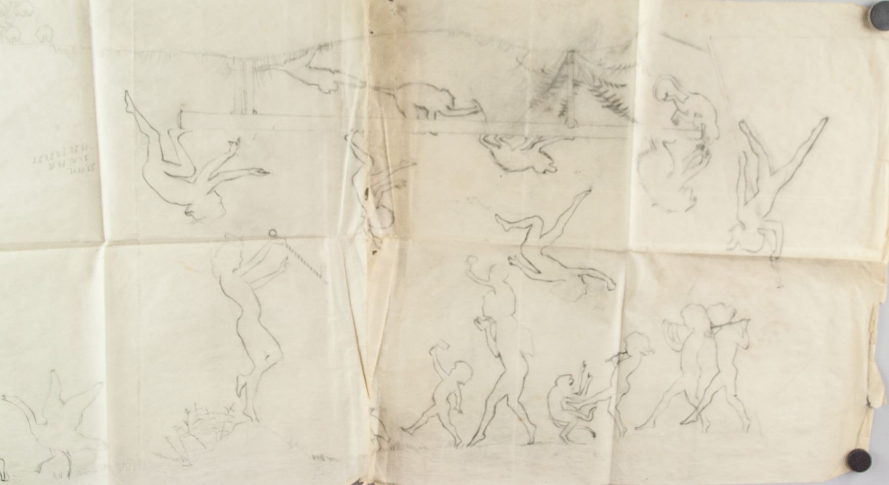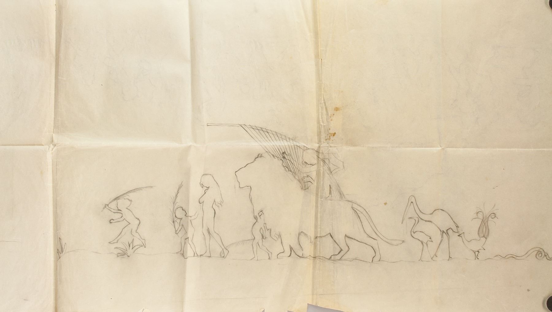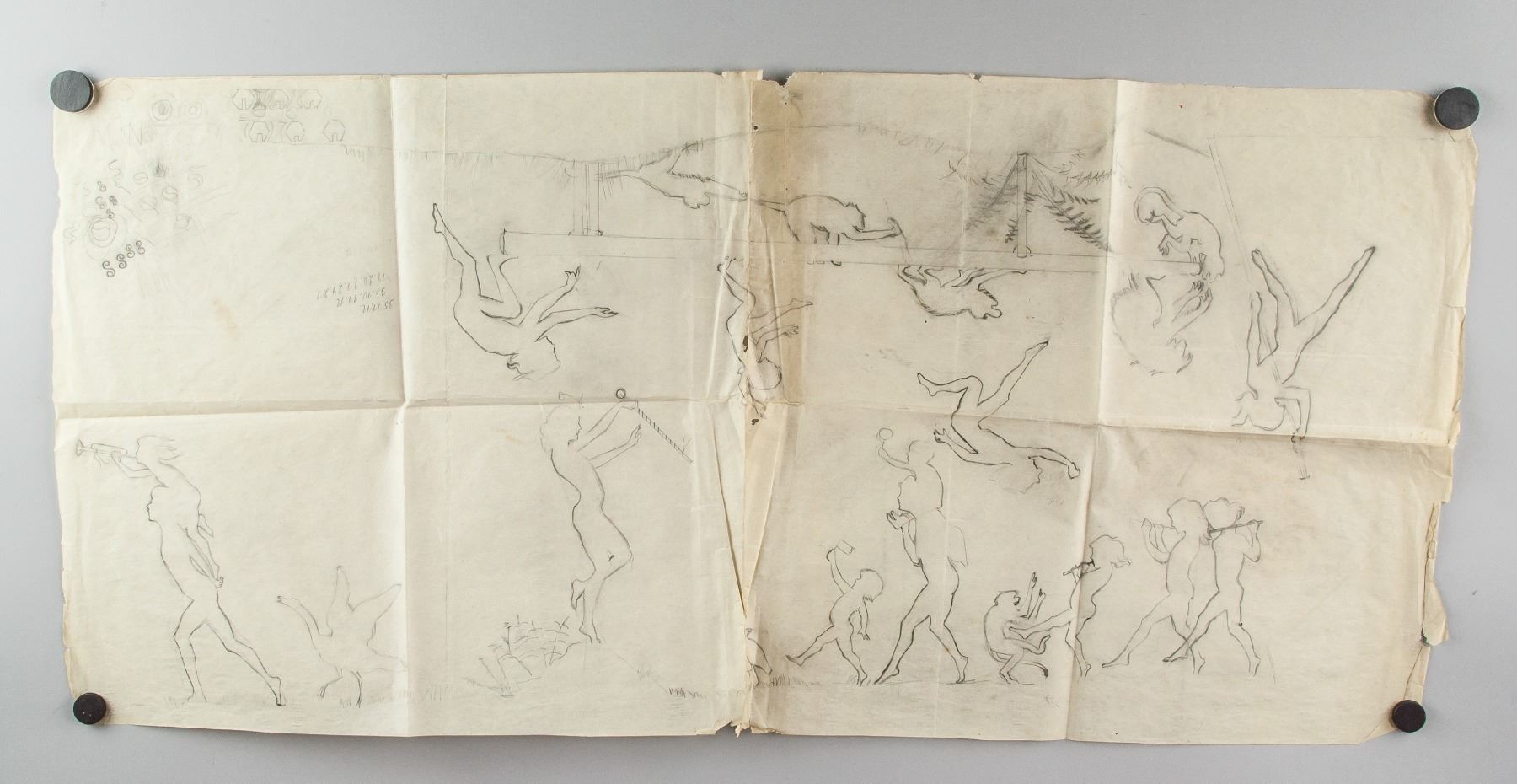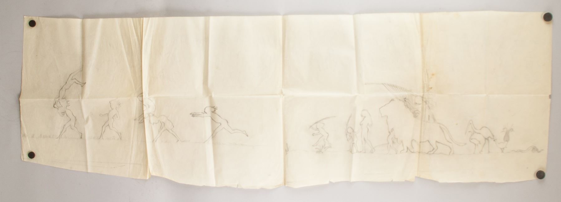 Preparatory work stile Jugendstil, graphite on paper. 18 x 56 in (45.7 x 142.2 cm)