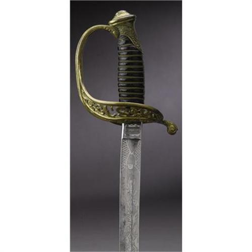 <B>Presentation Sword of Confederate General John Henry Winder. Captured by a 9th Pennsylvania Cavalry Soldier at the Fall of Richmond.</B></I> Confederate General John Henry Winder enjoyed an illustrious military career after his graduation from the United States Military Academy in 1820. He was an instructor of tactics while Jefferson Davis was a cadet but resigned from the army in 1823. Re-appointed four years later, he distinguished himself during the Mexican War, earning brevets for action at Contreras and Churubusco and rising to the rank of major at the outbreak of the Civil War. <BR><BR>Already 60 years of age, he resigned his commission and was appointed a brigadier general of the Provisional Confederate Army on April 27, 1861. He would become famous as the Provost Marshal at Richmond, the Confederate capitol, a position that made him at times unpopular with the local citizenry since he was in charge of order in the city during its tremendous growth during the war. But his service as Commissary General of all Union prisoners of war east of the Mississippi is where he gained most of his notoriety. <BR><BR>This Boyle and Gamble officer's sword was presented to General Winder during that tumultuous time as newspapers of the North heaped much bad press upon the General for his alleged mistreatment of Union prisoners of war, especially those at Andersonville, Georgia. Presented to him by "Some of his friends in Richmond" as inscribed on the obverse of the frosty 35" blade, this sword must have been well received by the General as these were some of his darkest days. The inscription, "To Gen J. H. Winder, From some of his friends in Richmond and as a token of their esteem, July 15 - 1864", appears at the midpoint of the obverse of the blade and is surrounded by intricate floral engraving. Three inches below the inscription are two crossed Confederate flags atop two crossed cannons. At the ricasso, there is highly etched cross-hatching with a floral motif above. On the reverse of the blade, the length of the sword is highly engraved in a floral design that extends nearly to the extent of the ¾ length fuller. At the ricasso of the reverse is more cross-hatching below which is the script "Boyle & Gamble". The leather washer is still intact at the ricasso. The gilt brass guard is still highly gilded retaining much of its luster. Incorporating the floating "CS" insignia, on each side is intricate foliate work that extends to the pommel and the quillon. The grip is made of black leather wrapped by brass twisted wire and is in excellent condition. <BR><BR>The metal scabbard is highly accentuated by the brass throat, center mount, and 8" lower mount along with the rings that make the scabbard visually and functionally attractive. <BR><BR>This sword was a war trophy captured by Lieutenant Isaac D. Landis, a Union officer with the 9th Pennsylvania Cavalry, which fought with General William Tecumseh Sherman during his "March to the Sea." This sword must have been captured near Florence, South Carolina, where Gen Winder had just died. Landis made his way back to Pennsylvania, and the sword was inherited by his grandson Landis Haines. It was acquired by the noted dealer and collector Norm Flayderman in 1961. The sword is further documented in the July 23, 1864 edition of the Richmond Daily Dispatch. The article describes the sword in detail and mentions "a sword to be presented to General John H. Winder" and notes the dedication of the engraving as described here. The article notes the artisan's name at Boyle and Gamble as "the work of art of Mr. Harry A. McArdle, a young artist who is engaged as draughtsman in one of the departments in this city." <BR><BR>General John Henry Winder must have surely welcomed this presentation sword, a gesture of support from the people back in Richmond during his most desperate days of the war. The literature of the period notes that he made every effort to deplete the ranks of Union prisoners through an exchange process that was met with resistance by the federal government. He died before war's end on February 7, 1865, at Florence, South Carolina. This Confederate presentation sword is a rare historical and unique general's sword that was carried by a leading Confederate general who played a significant role during the Civil War. Only a few Confederate generals' presentation swords are known to exist. <BR><BR><B>Provenance:</B></I> <BR><I>General John Henry Winder <BR>Landis Haines (Grandson of Lt. Issac Landis, 9th Pennsylvania Cavalry Sherman's ) <BR>J. H. Briefer <BR>Norm Flayderman <BR>The Tharpe Collection of American Military History</B></I> <BR><BR><B>Exhibited:</B></I> <I>The Liberty Heritage Society Museum</B></I><BR><BR><b>Shipping:</b> Requires 3rd Party Shipping (<a target="_blank" href="http://www.heritageauctions.com/common/shipping.php">view shipping information</a>)