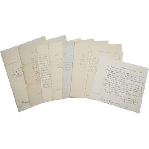 <B>President Andrew Jackson's Administration.</B></I> A group lot of 17 autographs in various formats by cabinet members, politicians, and administrators who served during Jackson's presidential term of office. Includes: <B>Louis McLane</B></I> (ALS); <B>Andrew Stevenson</B></I> (ALS); <B>Martin Gordon</B></I> (an ALS to Jackson requesting a military appointment for a friend's son); <B>S.D. Ingham</B></I> (ALS); <B>Amos Kendall</B></I> (ALS); <B>John Brauch</B></I> (LS); <B>William J. Duane</B></I> (ALS, March 18, 1813, great content regarding the voting down of a bill "<I>appropriating money for bridges and roads</B></I>" by the legislature and criticizing the members for being interested only in promoting their own agendas); <B>John H. Eaton</B></I> (ALS); <B>John Forsyth</B></I> (signature); <B>Lewis Cass</B></I> (signature); <B>Mahlon Dickerson</B></I> (signature); <B>William T. Barry</B></I> (ADS); <B>John Macpherson Berrien</B></I> (ALS); <B>Roger B. Taney</B></I> (2 signatures); <B>Edward Livingston</B></I> (LS) ; and <B>Levi Woodbury</B></I> (signature). All signatures are mounted, overall condition is very good to near fine. <I>From the collection of Henry E. Luhrs.</B></I> <BR><BR><b>Shipping:</b> Miscellaneous Collectibles, Smal (<a target="_blank" href="http://www.heritageauctions.com/common/shipping.php">view shipping information</a>)