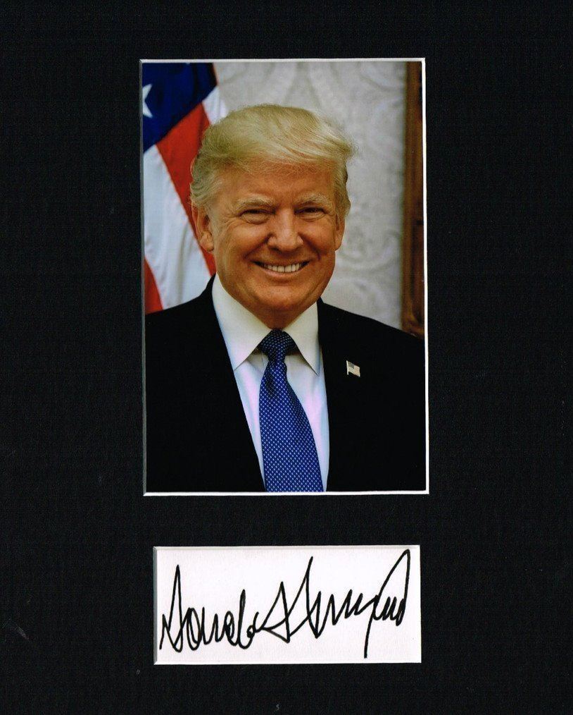 An autograph from the current US President Donald Trump. Professionally mounted and framed. Supplied with coa.