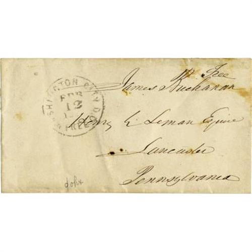 <B>President James Buchanan Free Frank Envelope Signed, </B></I> 5.25” x 3”, signed free frank on front, remnants of a wax seal on the back with and eagle surrounded by "President of the United States". Near fine. <I>From the collection of Henry E. Luhrs.</B></I><BR><BR><b>Shipping:</b> Flat Material, Small (<a target="_blank" href="http://www.heritageauctions.com/common/shipping.php">view shipping information</a>)