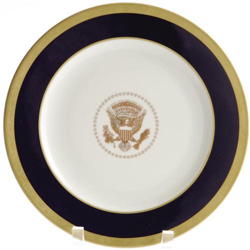 <B>President Reagan Presidential China Plate.</B></I> This 9" presidential plate was issued as a working service plate for President Ronald Reagan. Produced for everyday use in the Presidential Quarters and the West Wing, it is in virtually mint condition.