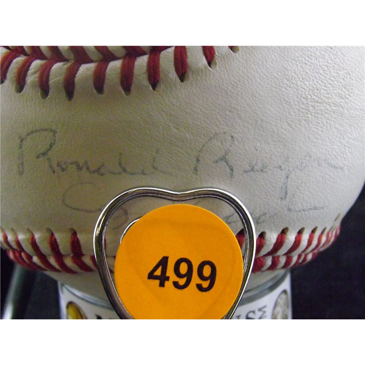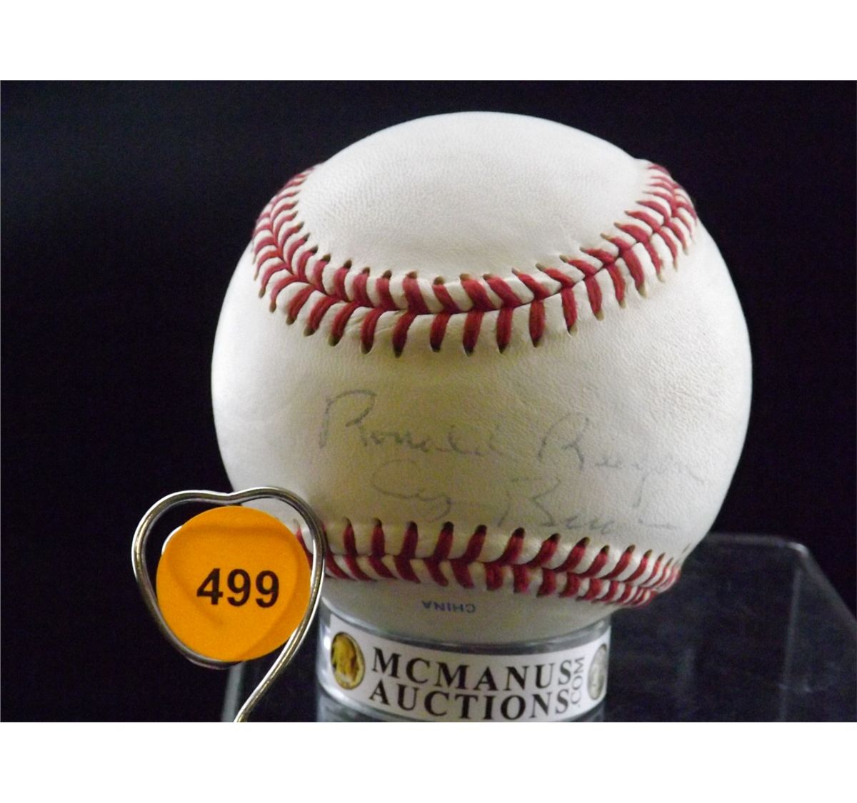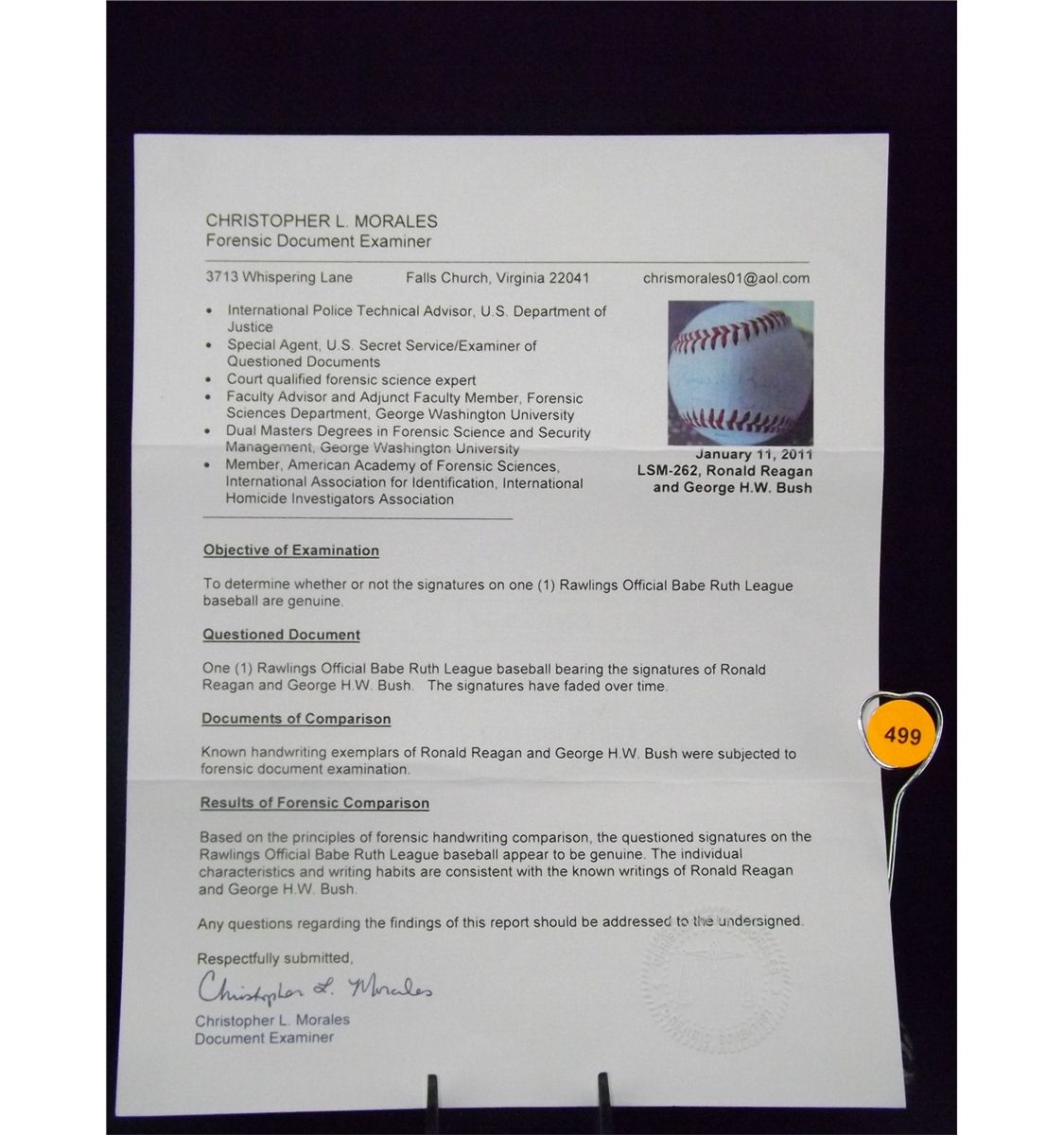 President Reagan and V.P. George H.W. Bush Autographed Baseball. Rawlings Official Babe Ruth League Ball. Appraised or estimated retail value $8,000. COA by Christopher Morales. All Sales Final. Please see terms and conditions of auction.