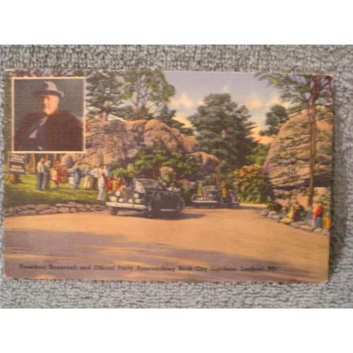 Great postcard of President Franklin Roosevelt at Lookout Mountain. Good color. Overall good condition. Slight yellowing from age.