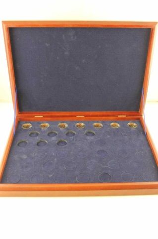 Quality Cherrywood Display case for your Presidential Coin Collection. Display Case is in good shape showing little wear. Case includes SEVEN DIFFRENT SEALED presidential coins to kick your collection off.