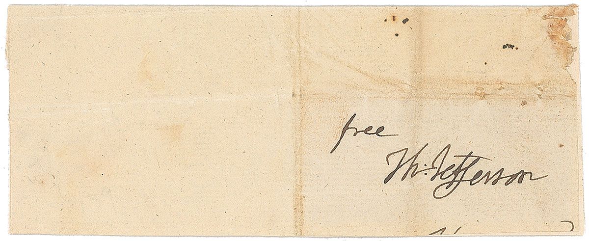 Very bold and crisp franking signature, “Free Th: Jefferson,” on an off-white 4.25 x 1.75 slip. In fine condition.