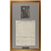 TLS as president, signed "Woodrow Wilson," one page, 6.75 x 7.25, White House letterhead, July 22, 1915. Letter to Secretary of Commerce William C. Redfield. In part: "I shall entertain with much interest the report on fur seals which accompanied your letter." Also includes an earlier ink signature, "Woodrow Wilson," on an off-white 2 x 1 slip. Double-matted and framed with a period Hartsook photo and nameplate affixed to the glass to an overall size of 16 x 26. In overall very good condition, with scattered creases, toning, and several office stamps and notations to the letter, substantial haloing to the signature on the letter, and scattered soiling and a tear passing through a portion of the signature on the slip.