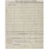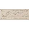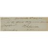 Fletcher's Bank check, 7 x 2.5, filled out and signed by Harrison, "Benj. Harrison," payable to Schulmeyer Bros. for $7.77, April 26, 1888. Double-matted with a color portrait and nameplate to an overall size of 11 x 18. In fine condition, with two vertical folds (one passing through a single letter of the signature), and expected bank stamps and cancellation cuts above the signature.