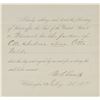 TLS as president, signed "Dwight D. Eisenhower," one page, 6.5 x 7.5, White House letterhead, February 21, 1955. Letter to George E. Guthery. In full: "My grateful thanks for signing the beautiful, even though flattering, Resolution of personal commendation prepared by the Republican Finance Committee and given to me on February seventeenth." Double-matted and framed with the original mailing envelope, an image, and a nameplate affixed to the glass to an overall size of 19.75 x 16.5. In very good condition, with overall foxing and toning.