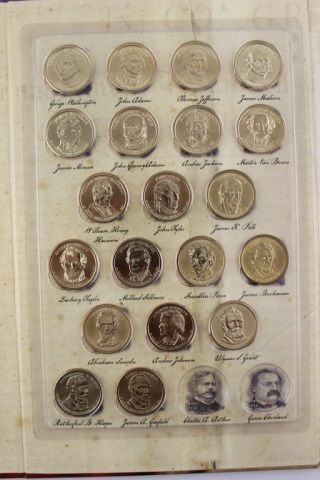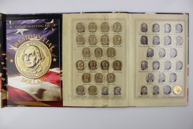 Presidential Dollars Coin Collecting Kit includes the first 20 Presidential dollars and 1 extra coin. $21.00 face in coins all ready in book.