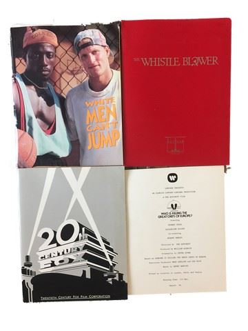 Collection of 4 press kits and black and white publicity stills included, sized mainly 8x10's from various movie studios. (1970's-90's). From Nelson Entertainment "Whistle Blower (1986) starring Michael Caine as Frank Jones, James Fox as Lord, and Nigel Havers as Bob Jones, includes 5 stills. From 20th Century Fox " White Men Can't Jump" (1992) starring Wesley Snipes as Sydney Deane, Woody Hareldson as Billy Hoyle, and Rosie Perez as Gloria Clement, includes 4 stills. From 20th Century Fox "When the Whales Came" (1989) starring Paul Scofield as Zachariah Woodcock, Helen Mirren as Clemmie Jenkins, and David Suchet as Will, includes 7 stills. from Lorimar Productions "Who is Killing The Great Chefs of Europe" (1978) starring George Segal as Robert Ross, Jacqueline Bisset as Natasha O'Brien, and Robert Morley as Maximillian Vandeveer, no stills included.