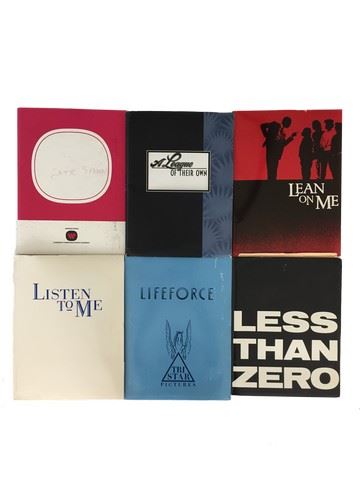 Collection of 6 press kits with black and white publicity stills included, sized mainly 8x10's. (1970's-90's). From Warner Brothers "The Late Show" (1977), from Columbia Pictures "A League of Their Own" (1992), from Warner Brothers "Lean On Me"(1989), from Tri-Star Pictures "(1985), from the Weintraub Entertainment Group "Listen To Me" (1989), from 20th Century Fox "Less Than Zero"(1997).