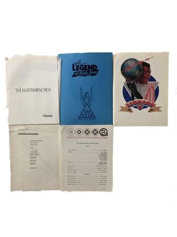 Collection of 5 press kits with black and white publicity stills included, sized mainly 8x10's. (1970's-90's). From Cinecom "The Lighthorseman" (1987), from United Artists "Lenny" (1974), "The Life and Times of Judge Roy Bean"(1972), from Tri Satr Pictures "The Legend of Billie Jean"(1985), from Columbia Pictures "Bill Cosby in Leonard part 6" (1987), from Embassy Pictures, produced by Hal Ashby film, black and white stills of The Rolling Stones "Let's Spend The Night Together"(1982).