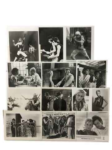 Collection of 5 press kits with black and white publicity stills included, sized mainly 8x10's. (1970's-90's). From Cinecom "The Lighthorseman" (1987), from United Artists "Lenny" (1974), "The Life and Times of Judge Roy Bean"(1972), from Tri Satr Pictures "The Legend of Billie Jean"(1985), from Columbia Pictures "Bill Cosby in Leonard part 6" (1987), from Embassy Pictures, produced by Hal Ashby film, black and white stills of The Rolling Stones "Let's Spend The Night Together"(1982).