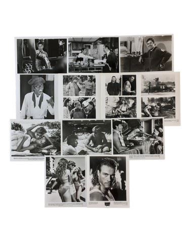 Collection of 4 press kits with black and white publicity stills included, sized mainly 8x10's, from various movie studios. (1970's-90's). From Universal Pictures "Hard Target" (1993) starring Jean-Claude Van Damme as Chance Boudreux, Lance Henriksen as Emil Fouchon, and Arnold Vosloo as Pik Van Cleef, includes 8 stills. From 20th Century Fox "Hardly Working" (1980) starring Jerry Lewis as Bo Hooper, Susan Oliver as Claire Trent, and Deanna Lund as Millie, includes 3 stills. From Columbia Pictures "Hard Times" (1975) starring Charles Bronson as Chaney, James Coburn as Speed, and Stother Marin as Poe, no stills included. From Columbia Pictures "Hard Bodies" (1984) starring Grant Cramer as Scotty Palmer, Teal Roberts as Kristi, and Courtney Gaines as Rag, includes 7 stills.