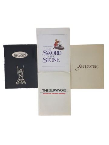 Collection of 4 press kits, each with their own set of black and white publicity stills, mainly 8"x10"s from various movie studios, (circa 1980's and 1960 ). ~ 50 stills in all. From Columbia Pictures "Sylvester" (1985), a spunky Texas girl and an old Westerner take a rodeo horse to the Olympic trials in Kentucky. Starring Melissa Gilbert as Charlie, Richard Farnsworth as Foster, and Michael Schoeffling as Matt. Includes 3 stills. From Columbia Pictures "The Survivors" (1983), the story of two men with different circumstances who witness a murder and have to learn to stay alive together. Starring Robin Williams as Donald Quinelle, Walter Matthau as Sonny Paulson, and Jerry Reed as Jack Locke. Includes 10 stills. From Tri Star Pictures "Switching Channels" (1988), starring Burt Reynolds as John, Kathleen Turner as Hildy Johnson, and Christopher Reeve as Blaine Bingham. Includes 9 stills. From Walt Disney Productions "The Sword and the Stone" (1963), the Disney adaptation of the classic fable chronicles King Arthur's humble beginnings, includes 7 stills.
