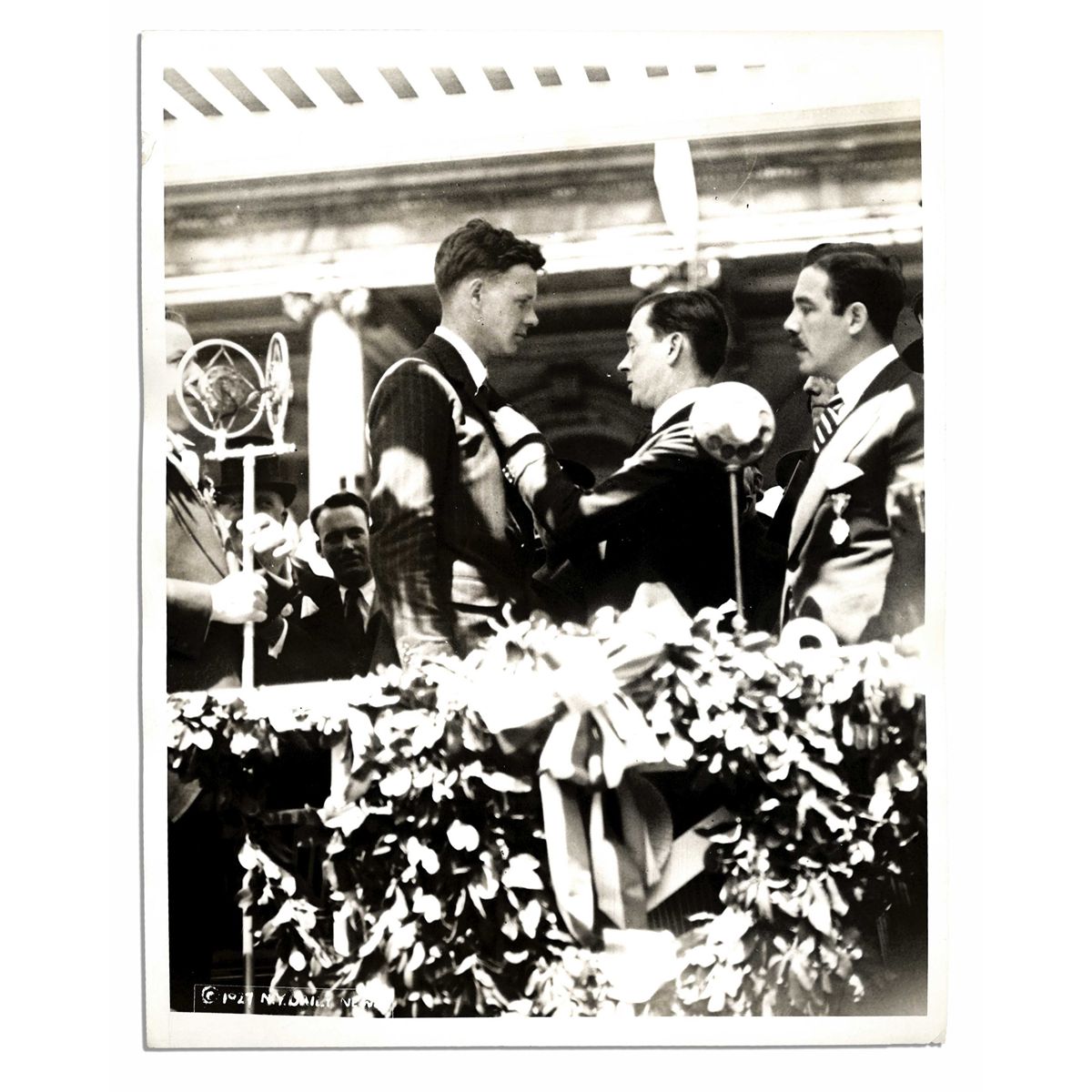 Press Photo of Charles Lindbergh Receiving Medal of Valor in NY on 13 June 1927 -- 8'' x 10'' Semi-Matte Photo Is Near Fine