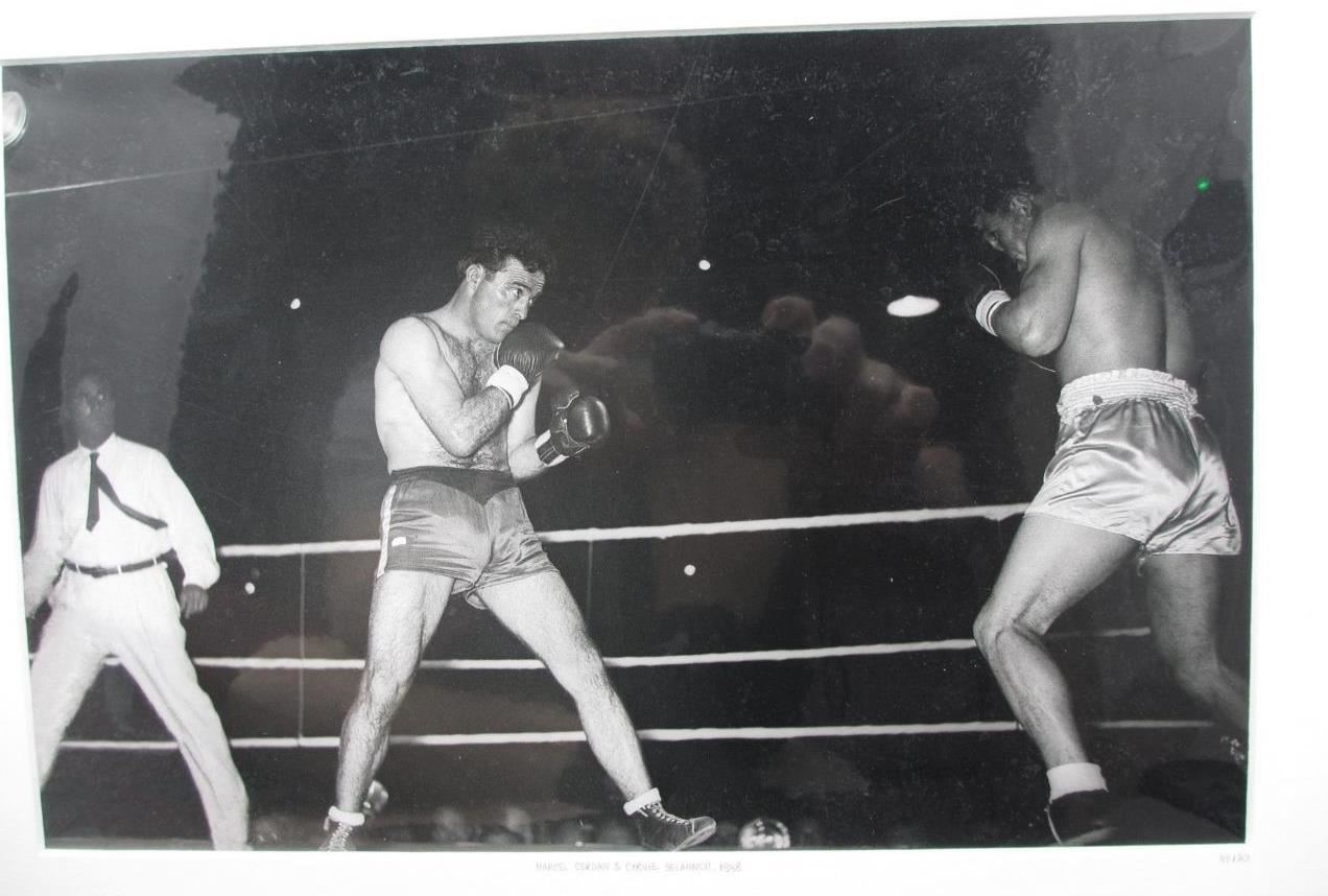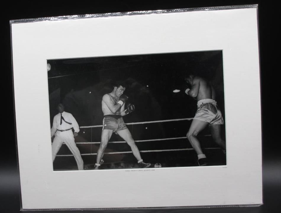 Marcel Cerdan & Cyrille Delannoit, 1948 Certified Photograph, Presse Sports/L'Equipe YellowKorner Certified Photograph. Certificate of Authenticity from YellowKorner affixed to the back. Matted Dimensions 16"x20". Protected with Clear Mylar Sleeve.