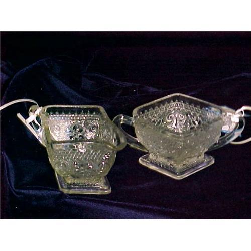 Pressed Cream and Sugar. Sweet set! Maybe Indiana? Each around 3" high and 5.5" long. Nice condition and nice to see again!