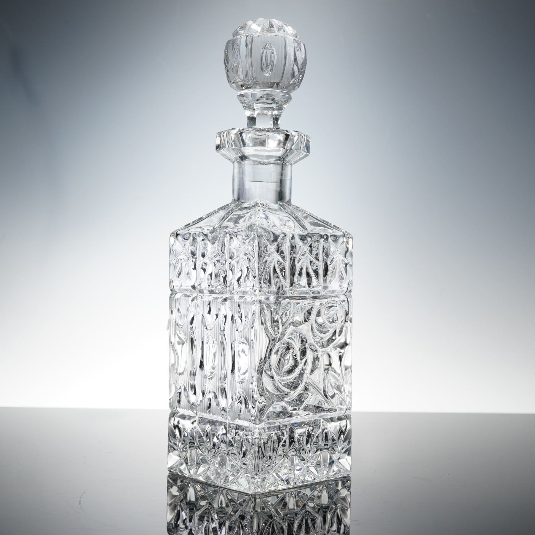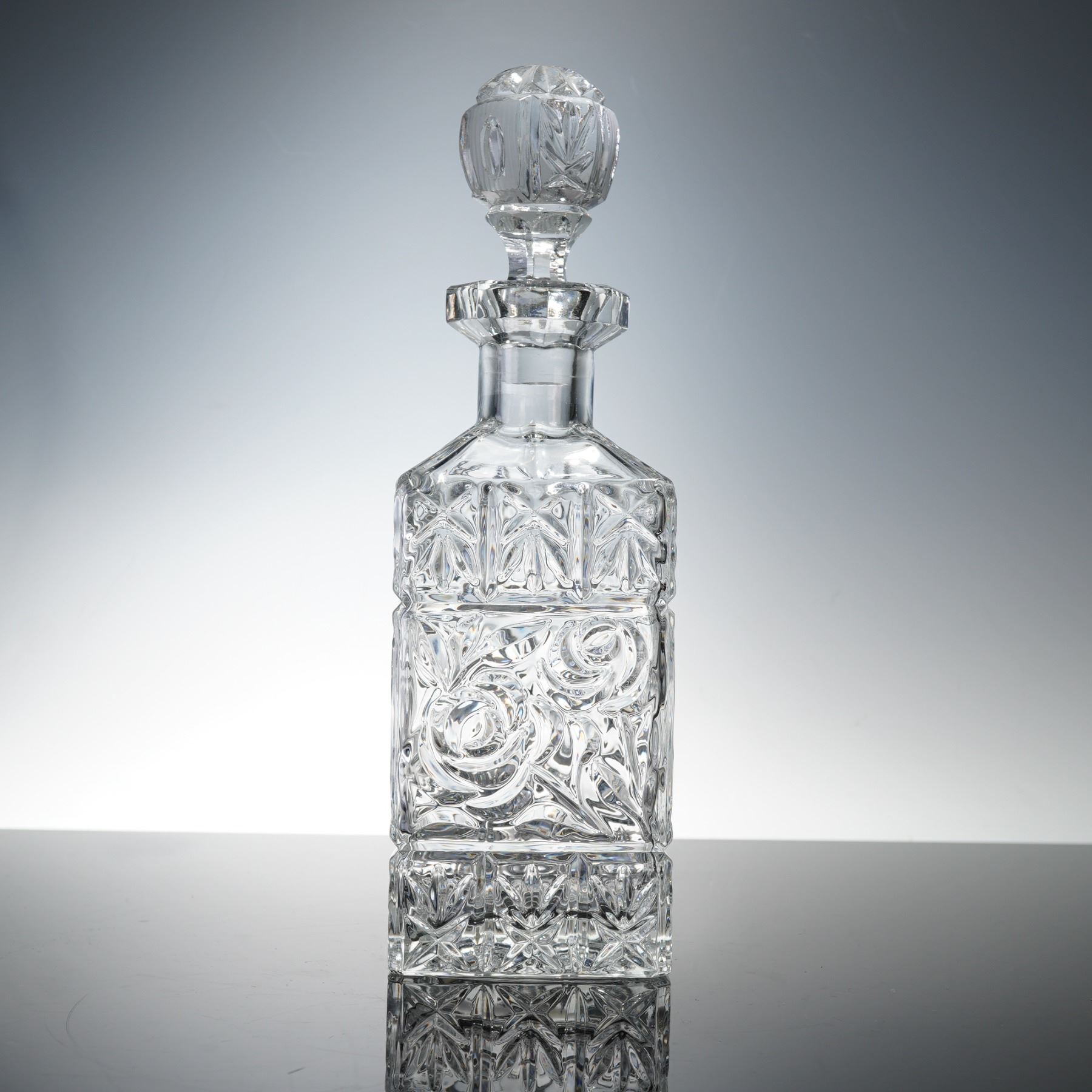 Pressed Cut Glass Floral Decanter with Stopper