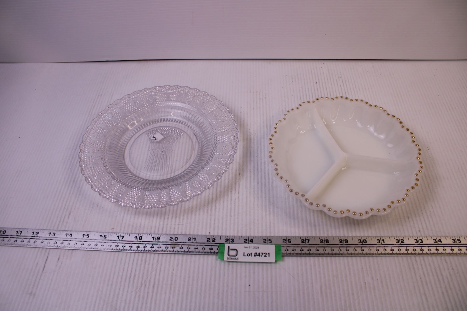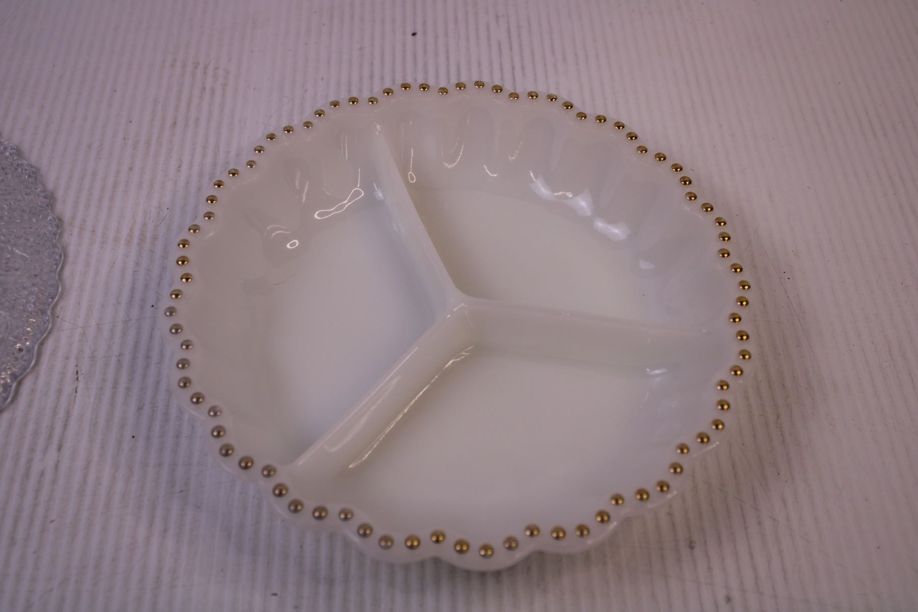 Pressed Glass Bread Plate + Milk Glass Divided Dish