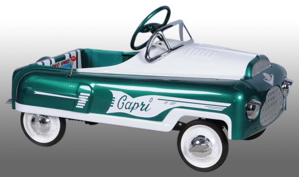 Description 1957. Two speed chain drive with horn and electric headlights. Condition (Restored). Size 37" L.