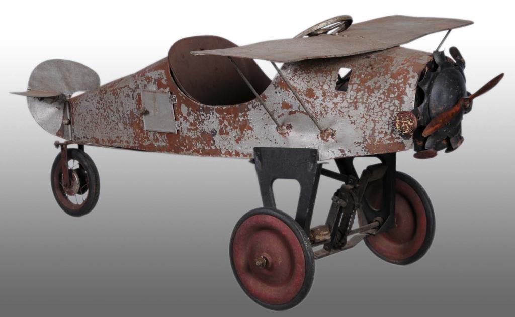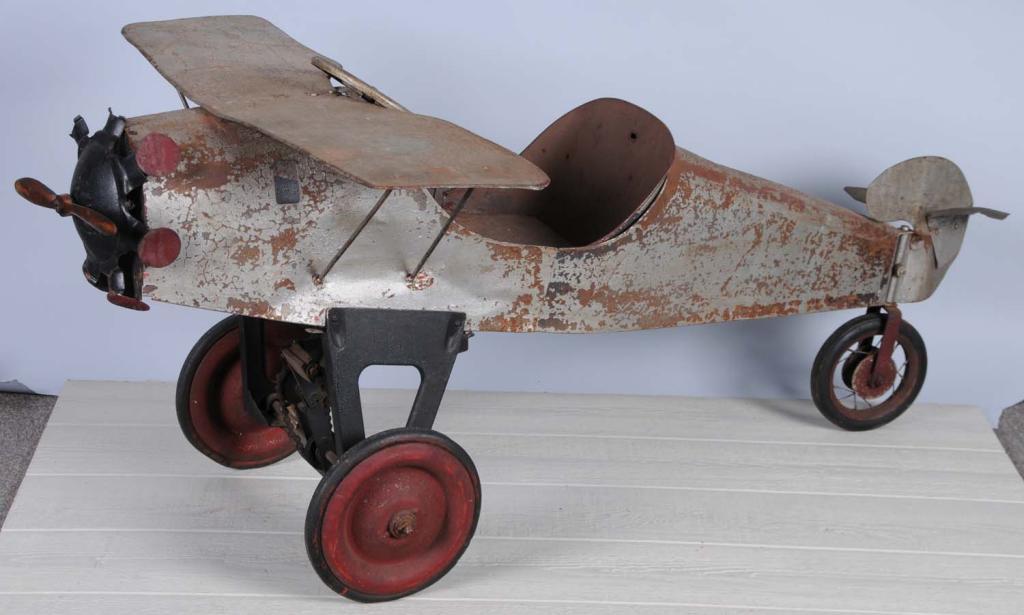 Description 1930s. American National in Toledo, Ohio. Chain drive pedal plane. Old repaint with brush. Condition (Good). Size 62" L.