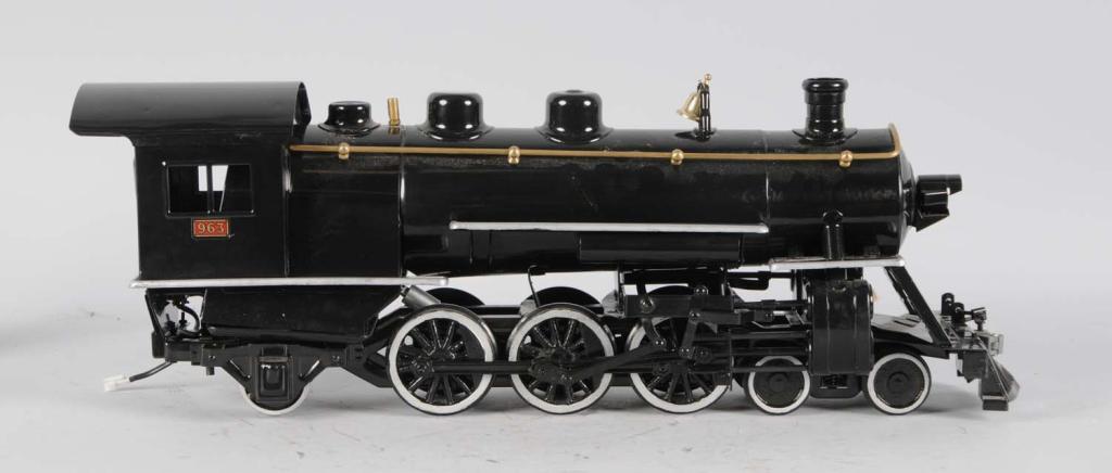 Contemporary. Limited model made with a motorized unit built into engine and tender. Yellow tank car along with gray flatcar and a caboose. Condition (Excellent).