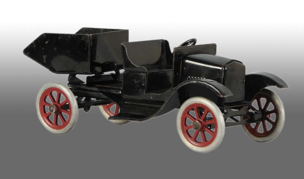 Circa 1926 to 1930. Open dump bed tapers to a point and hand latch releases dump. Moderate play wear to paint and decals. Condition (Very Good). Size 12" L.