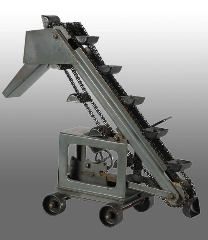 Circa 1924 to 1927. Gray structure with black buckets and early circular decal from early production. Condition (Excellent). Size 21" x 18".