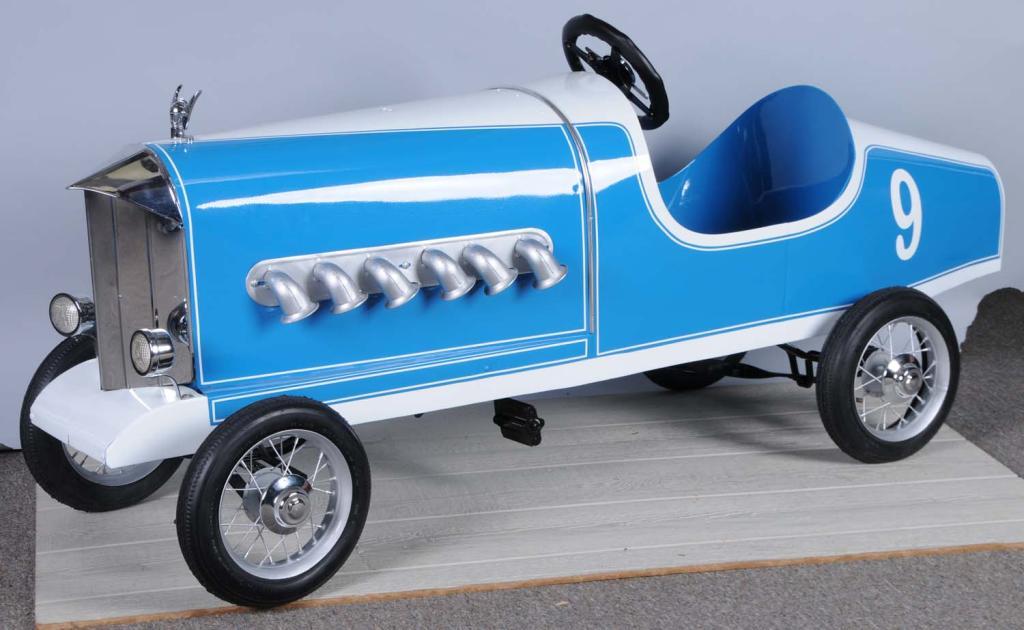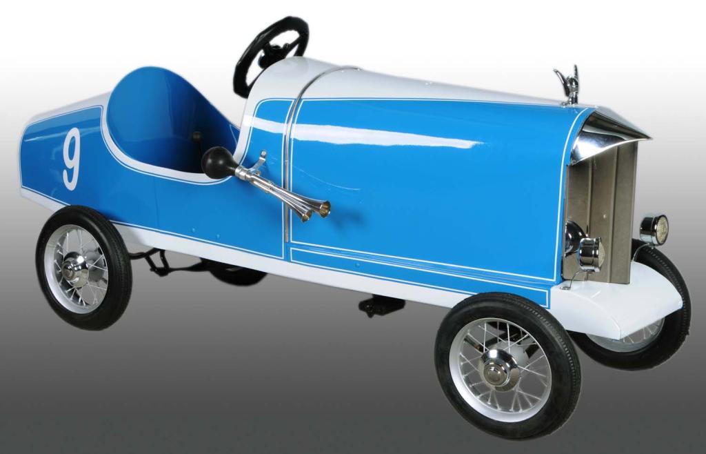 Description 1931. American National in Toledo, Ohio. No. 9 boatail style. Unusual length for a pedal car. Professionally restored. Condition (Restored). Size 67" L.