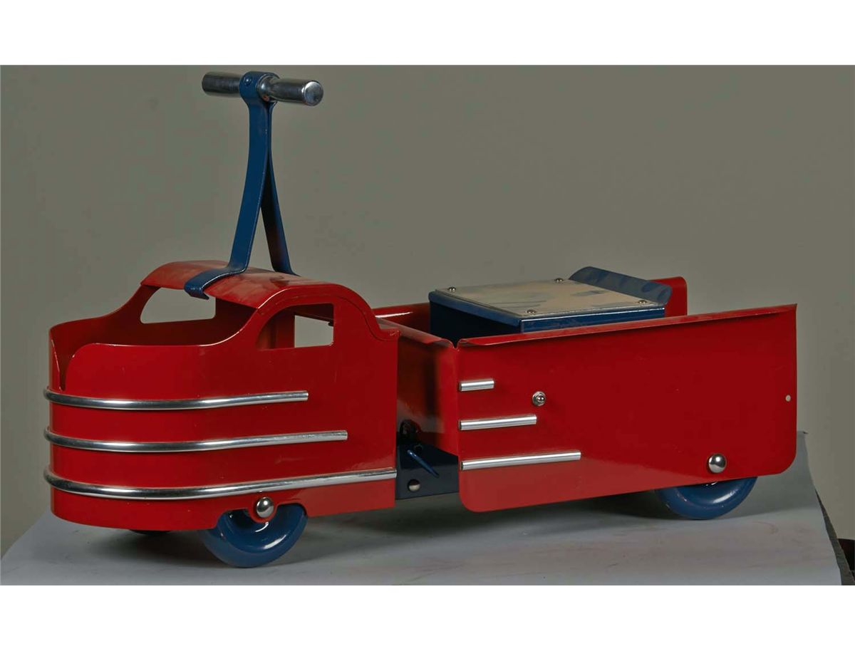 Restored in red and blue with chrome front grill and piping. Condition (Restored). Size 26" L.