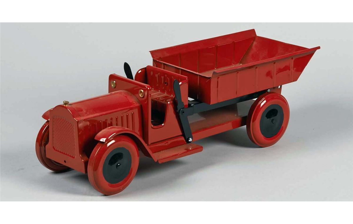 Restored in red with metal wheels and open cab. Condition (Restored). Size 18" L.