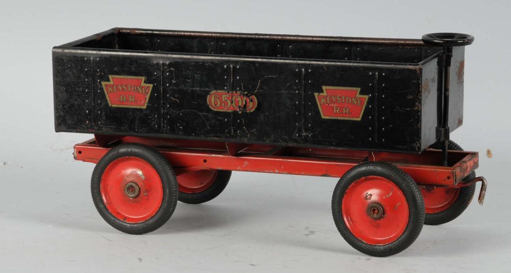 An accessory to a Keystone ride-on locomotive. Complete decals with moderate play wear and brush touchup to one side. Condition (Very Good). Size 20" L.