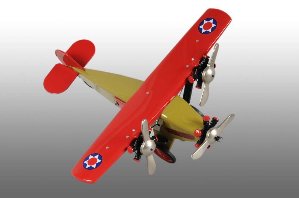 Three nickel-plated props with mechanical popping pistons. A very hard-to-find toy. Professional restoration to an all original toy. Condition (Restored). Size 25" L.