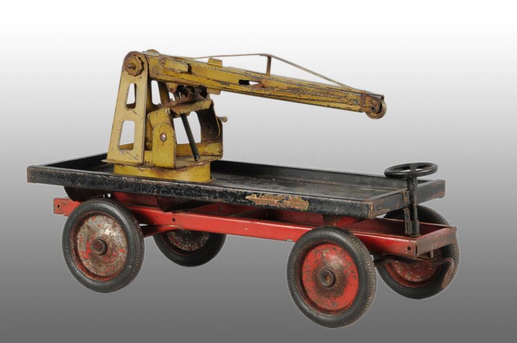 An accessory car to the Keystone sit 'n ride locomotive. Original and complete with heavy play wear. Condition (Good). Size 21" L.