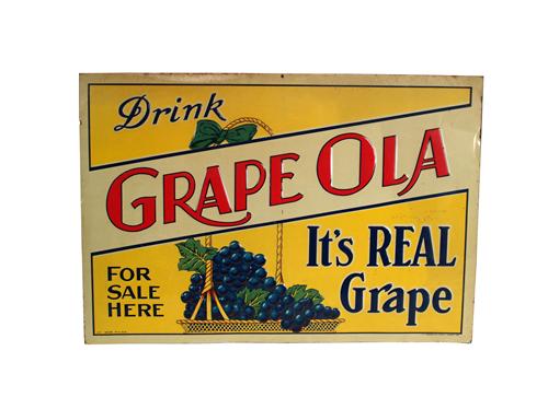 Pressed Tin Sign  "Grape Ola"  14 x 20 "  Good Condition    one corner has some issues