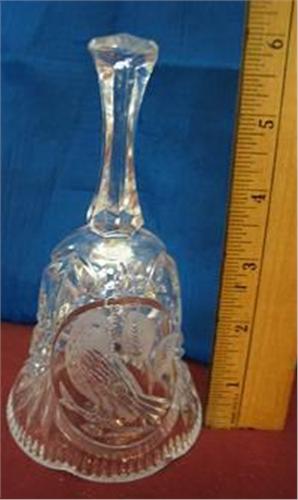 Pressed and Etched Bell with a Bird Motif. No cracks. Stands 6" tall