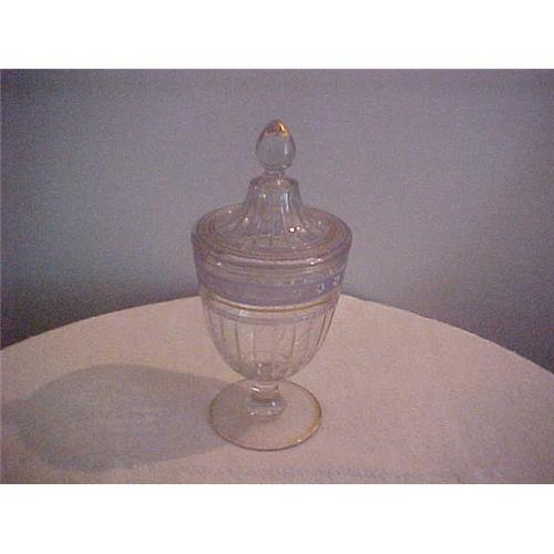 <tr><td>Title:Pressed glass candy compote, rib pattern; </td></tr>