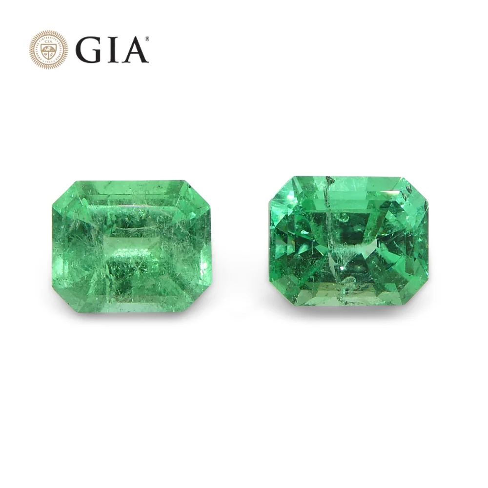 Gorgeous 2.99 Ct (1.42 Ct and 1.57 Ct) Green Emerald Pair are emerald cuts measuring 7.74 x 6.48 x 4.27 mm to 7.86 x 6.39 x 4.75 mm. Reveal moderate light tones and strong saturation. Do not miss this gorgeous pair! Origin: Colombia. Please see the certification for additional information.