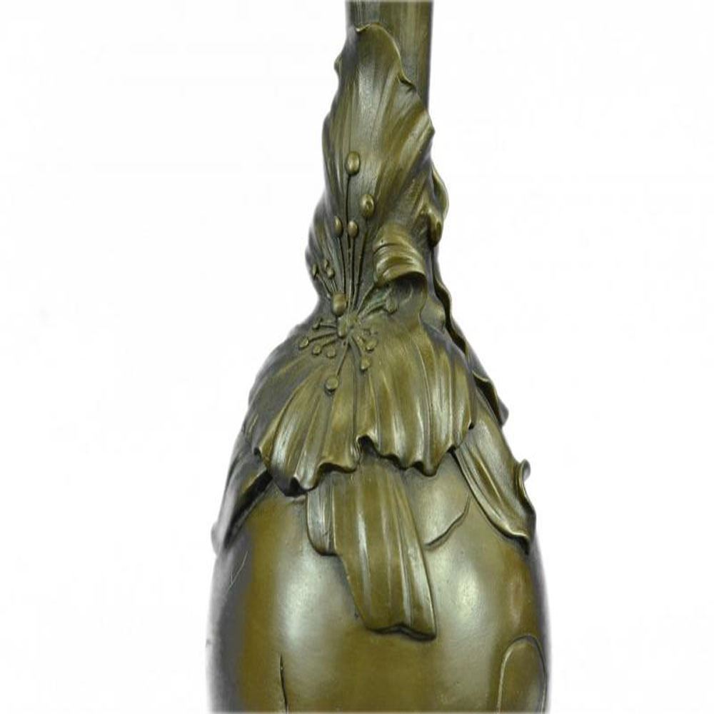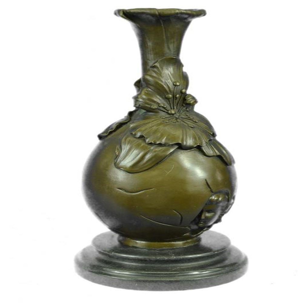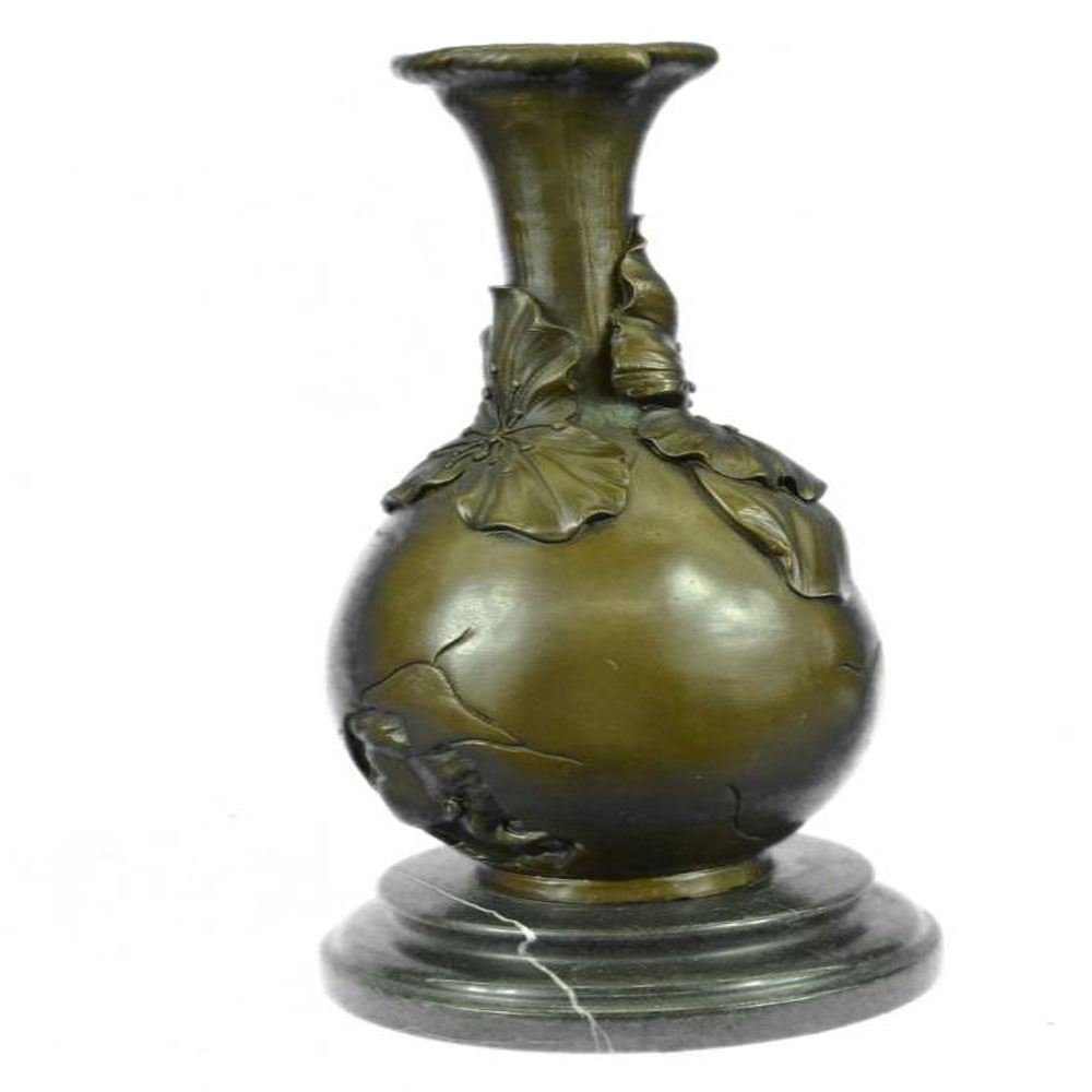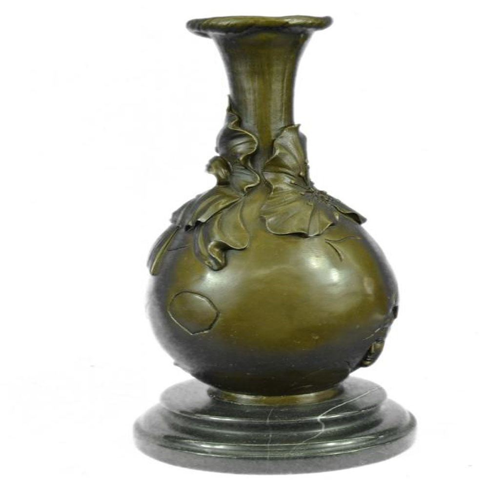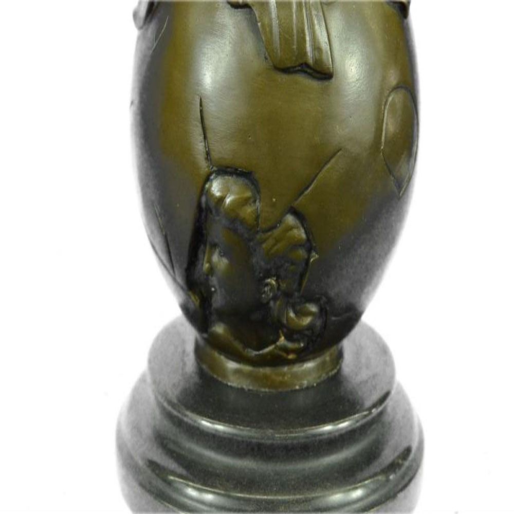 This Bronze Statue is handmade and cast in the traditional Lost Wax Casting Process. This insures a quality Bronze Sculpture that may be passed down from generation to generation. Translating into Vase, it was part of the Nouveau style that swept through the late 1800 early 1900. This style didnt last long, but its goal was to look at everyday life in a new way. This was commonly portrayed in fUrniture and decorative items such as vases. This Sculpture was casted using the Lost Wax Method and has a brown patina. It is handmade and sits on a marble base. Bronze Dimensions with Marble Base: Height 13 X Width 6 inches. Weight: 8 LBS.