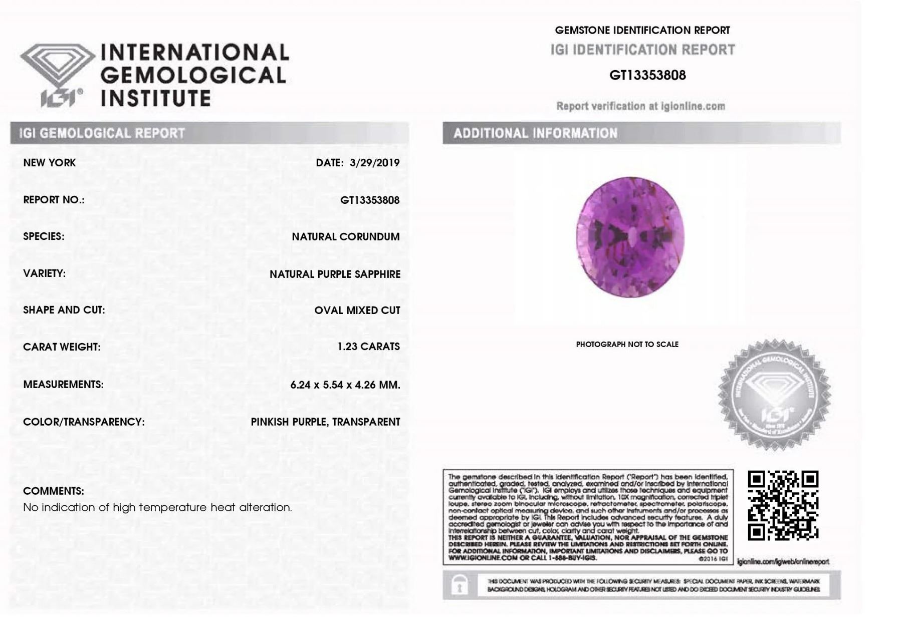 Vivid 1.23 Ct Pinkish Purple Sapphire measuring 6.24 x 5.54 x 4.26 mm with a mixed oval cut. The color and tone on this sapphire is absolutely stunning! Treatment: None. Please see the certification for additional information.