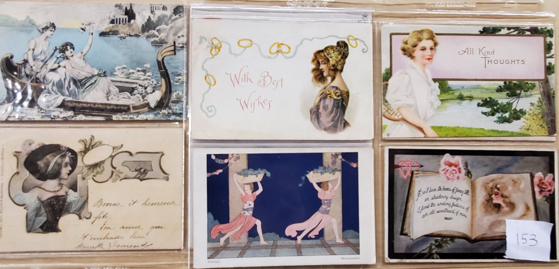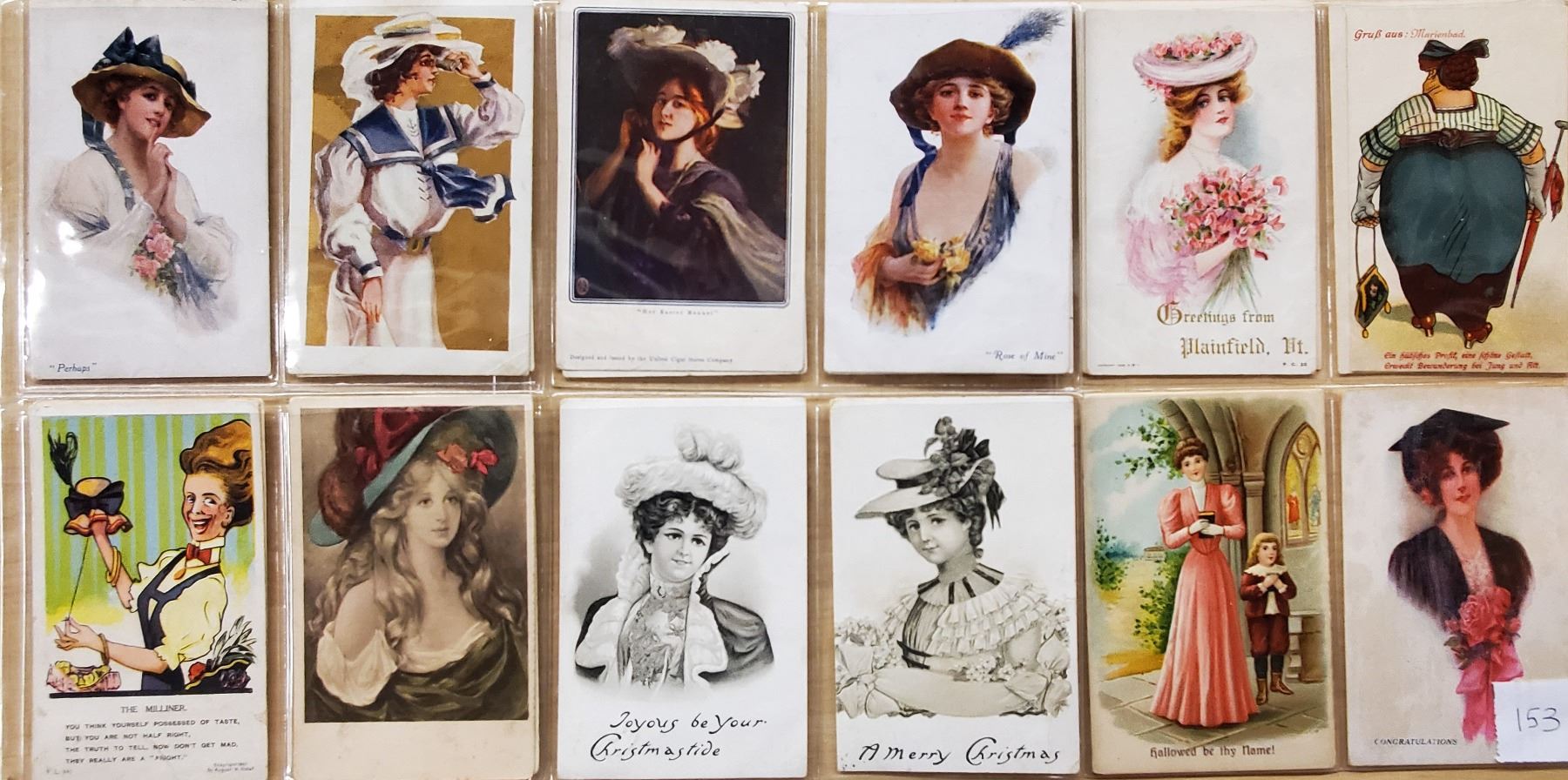 Over 100 pretty lady postcards. Different artists, publishers, etc. A few art nouveau like.