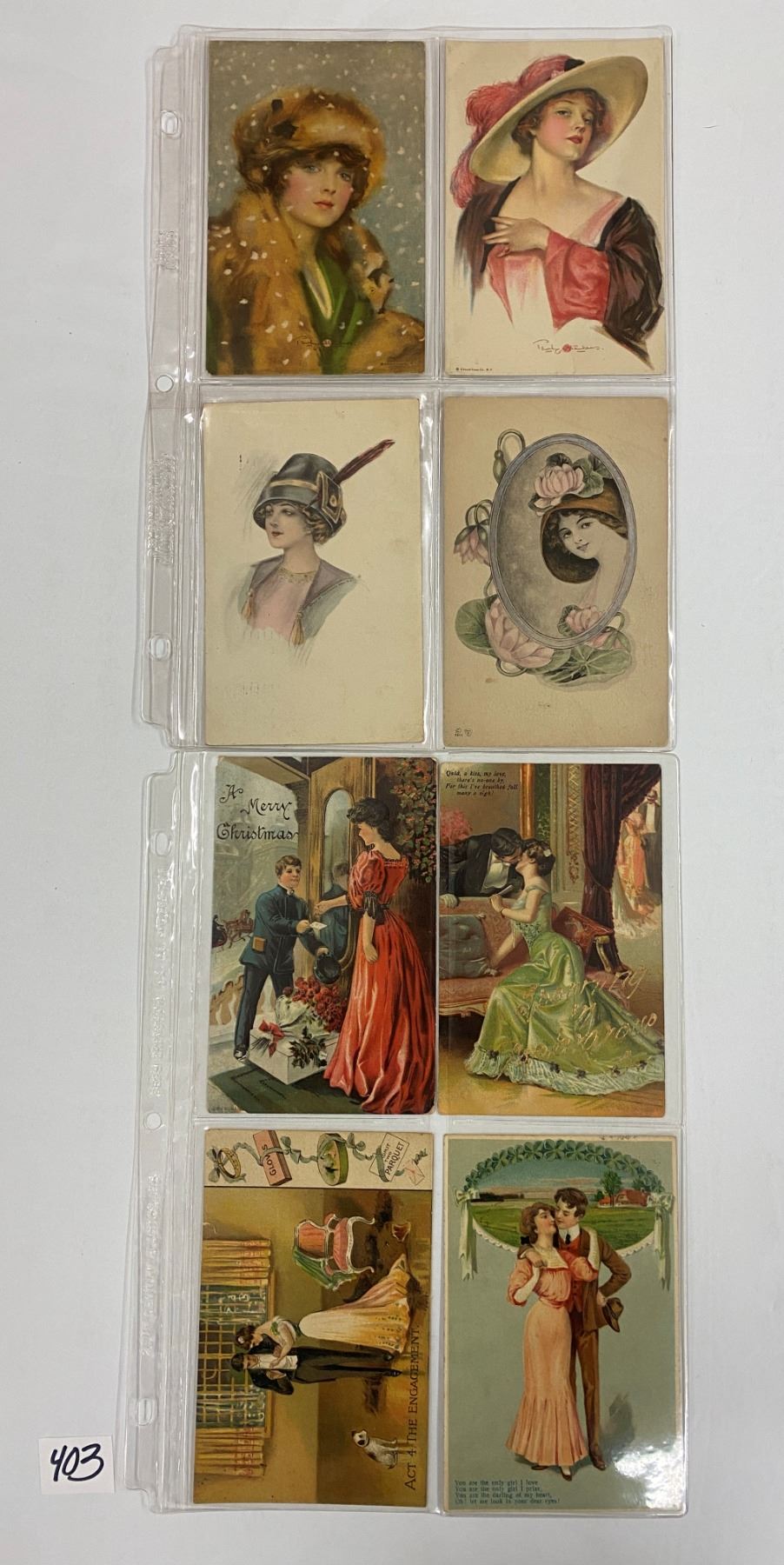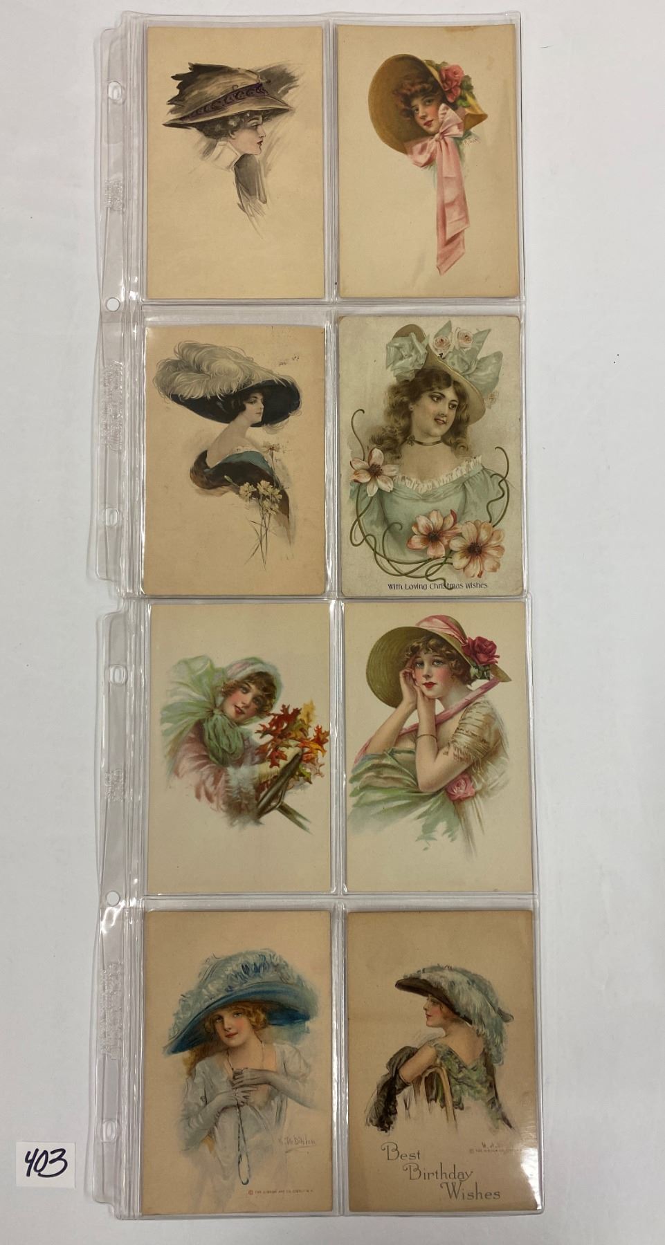 Over 65 pretty lady postcards. Early. Some signed artist.