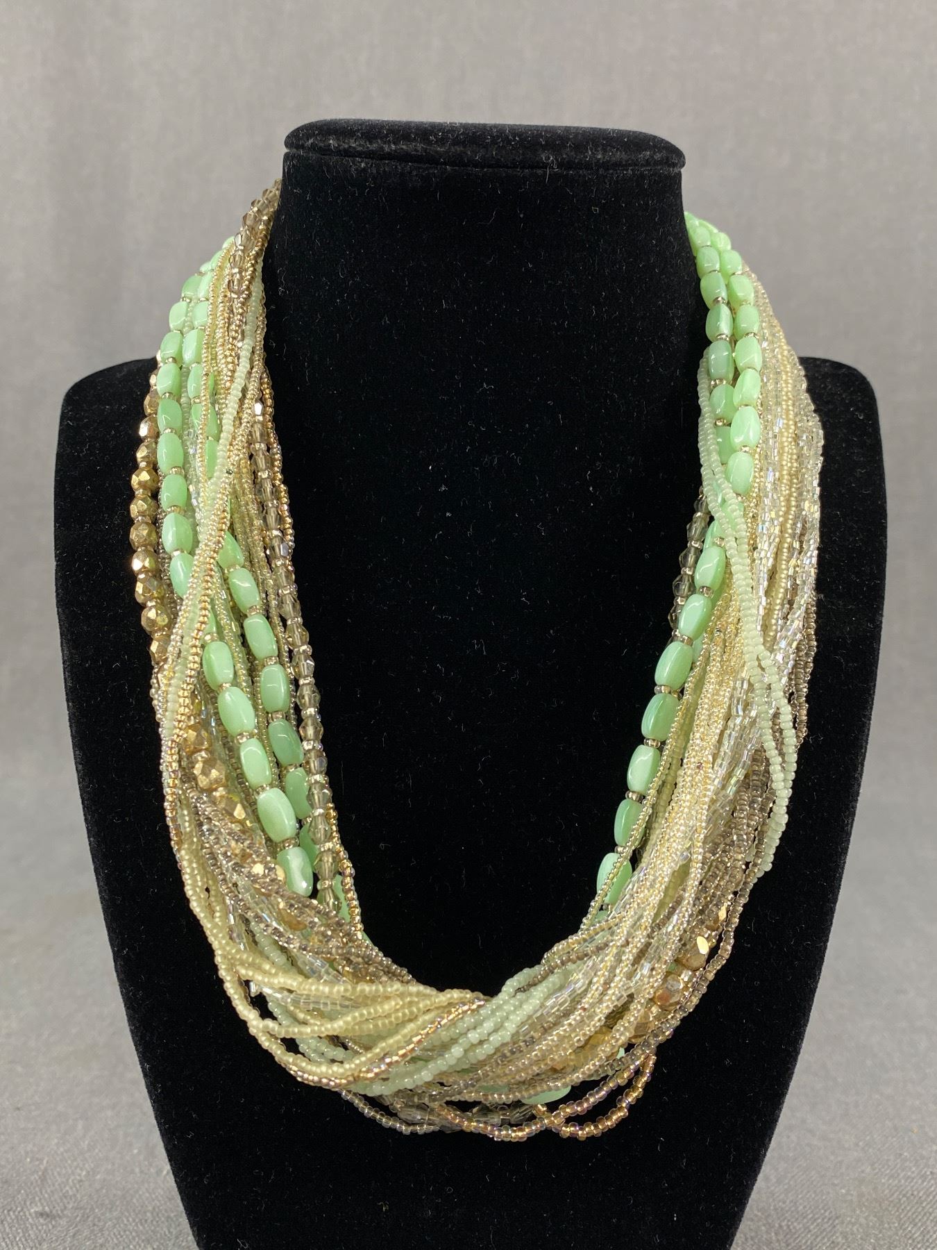 Pretty Multi Strand Micro Bead Necklace w/ Goldtone Clasp